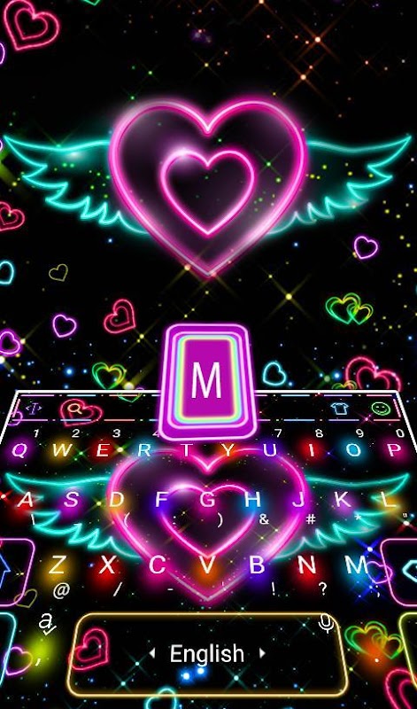 Colorful Neon Sparkling Heart Keyboard Theme 6.6.21.2019