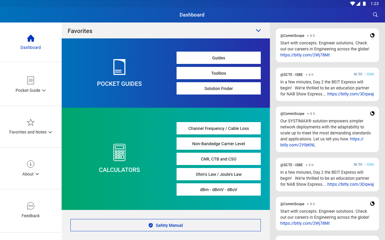 Ek işlevsellik, kolay erişim için favori içeriğinize, satır içi notlar almanıza ve CommScope ve SCTE / ISBE'den en son haberleri takip etmenize olanak tanır.