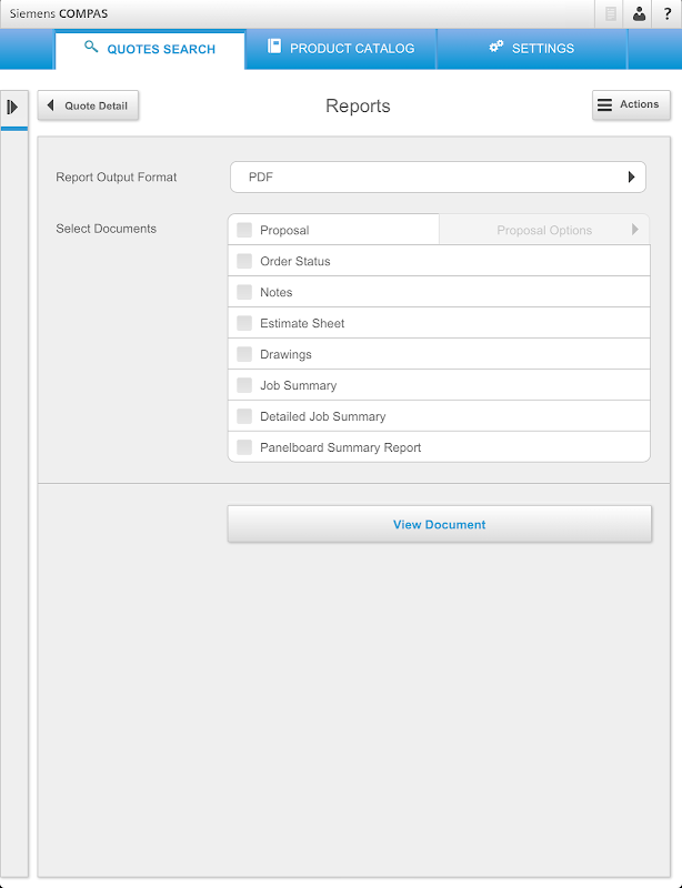 Siemens COMPAS Mobile App provides quick and easy access to core functionality from the desktop version of COMPAS enabling you to quickly search for and view existing quotes and orders, generate reports and drawings, conduct product searches and view product collateral.