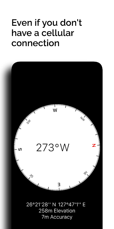 Yönü, konumu, rakımı ve doğruluğu gösteren basit bir pusula uygulaması.