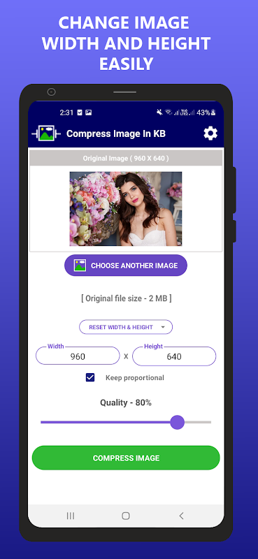 Bu uygulamanın ana işlevi, fotoğrafları gerekli dosya boyutuna doğru bir şekilde sıkıştırmaktır. Bu uygulama, görüntü boyutunu MB cinsinden KB'ye sıkıştıracaktır.