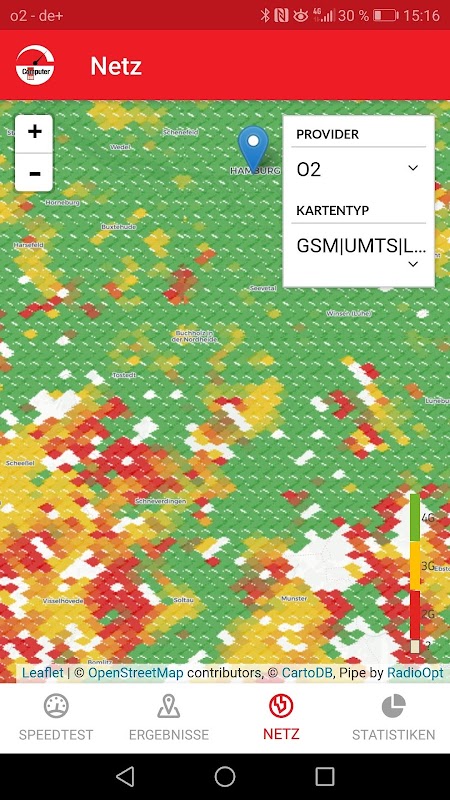 Bir kez daha, hiçbir UMTS veya LTE ağı mevcut? ağ kapsama haritası ( "Ağ") Almanya genelinde ağ kullanılabilirliği üzerinde gösterilecektir. herhangi bir sağlayıcıdan (E-Plus, O2, Telekom, Vodafone) ağ kapsama böylece bir harita üzerinde gösterilir. Not: