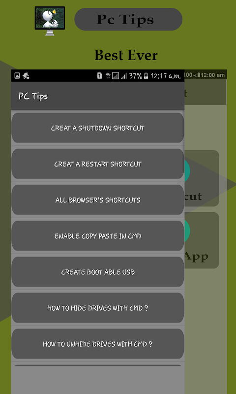 PC ipuçları ve rehber PC user.PC ipuçları ve rehber için tüm temel ve ilerleme ipuçları ve rehber hattı vardır cmd kullanılan tüm Komutlar vardır. PC programlarının kısayol tuşları vardır.Pc İpuçları ve Kılavuzu kullanıcı dostu bir arayüze sahiptir. Kullanıcılar Buraya göre Bilgisayar'ı kullanabilir Desire kolaylıkla, Windows işlemlerini yönetin Bilgisayarın Adım Adım Kılavuzu ile Bilgisayarın veya Windows'un Özelleştirilmesini Yönetin, Uygulama Kullanımı Kolaylaştırın.