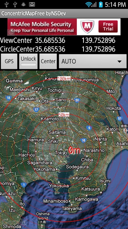 Otomatik, eşmerkezli dairelerin yarıçapı 10m ~ 500km'de seçilebilir.