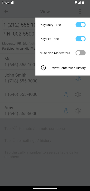 • Her katılımcı üzerinde tarih / zaman / süreleri ve bilgi de dahil olmak üzere konferans araması geçmişini görüntüleme