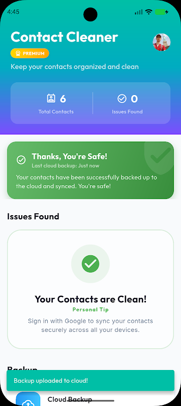 Contact Cleaner, adres defterinizi yönetmenin en akıllı ve en verimli yoludur. İster binlerce girişiniz olsun ister sadece birkaç kopyanız, uygulamamız kişilerinizi saniyeler içinde düzenlemenize, kopyaları kaldırmanıza ve güvenliğini sağlamanıza yardımcı olur.