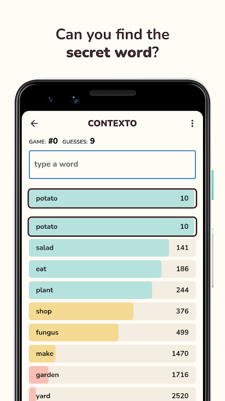 Kelimeler, gizli kelimeye ne kadar benzediklerine göre yapay zeka algoritması tarafından sıralandı.