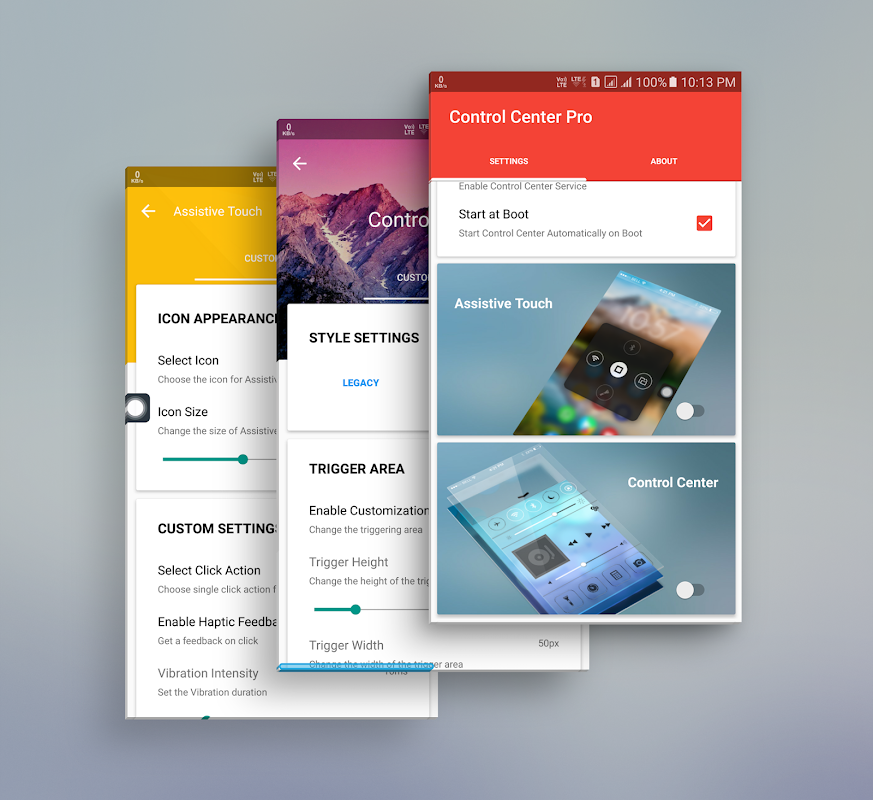 Control Center is a single solution to all your multitasking problems. It is a smart tool that contains your favorite features to be accessed from anywhere anytime. Control Center is inspired by iOS and lets you transform your android device into an iPhone. It brings the best features from iOS - Control Center and Assistive Touch to Android in one package with more customizations than in an iPhone.
