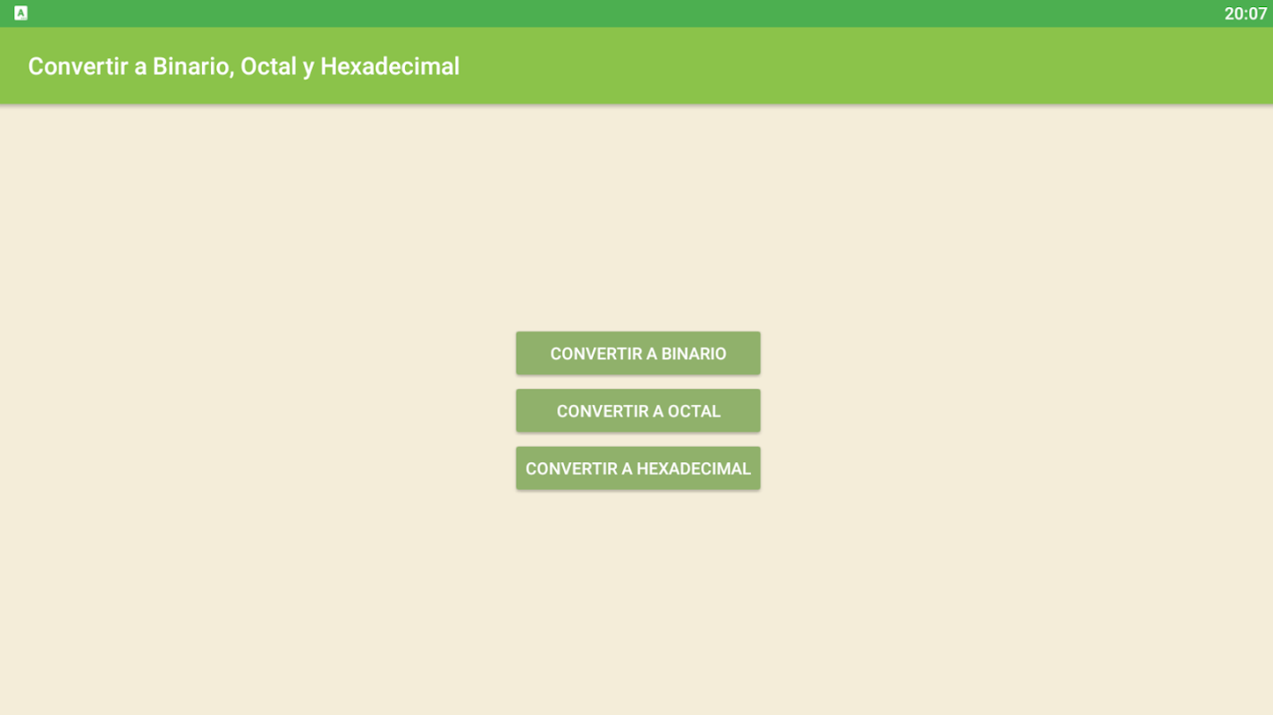 Aplicación para convertir cualquier numero decimal o entero a binario, hexadecimal y octal.
