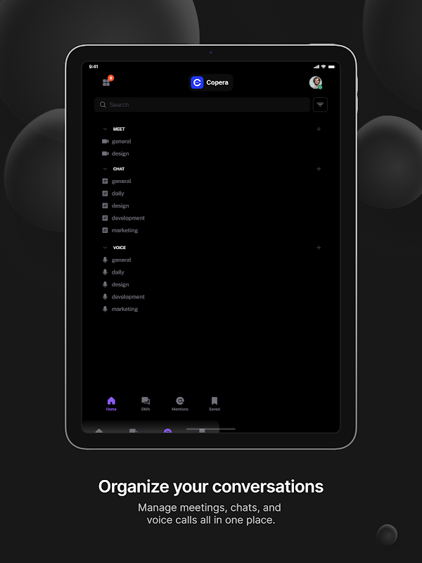 Copera ile bağlantıda kalın. Cep telefonunuzdan sohbet ve ses kanallarına erişin.