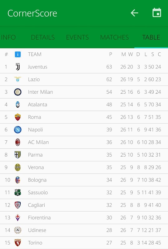 Favori liginizi seçin ve sıralamalara, sonuçlara ve gelecek maçlara erişin. Sevdiğiniz takımı seçin ve şampiyonluk sıralamasını, oynanan maçları, goller ve kornerlerle ilgili ayrıntıların yanı sıra gelecekteki mücadeleleri görüntüleyin. İstediğiniz toplantıya tıklayarak aşağıdakilere erişebileceksiniz: