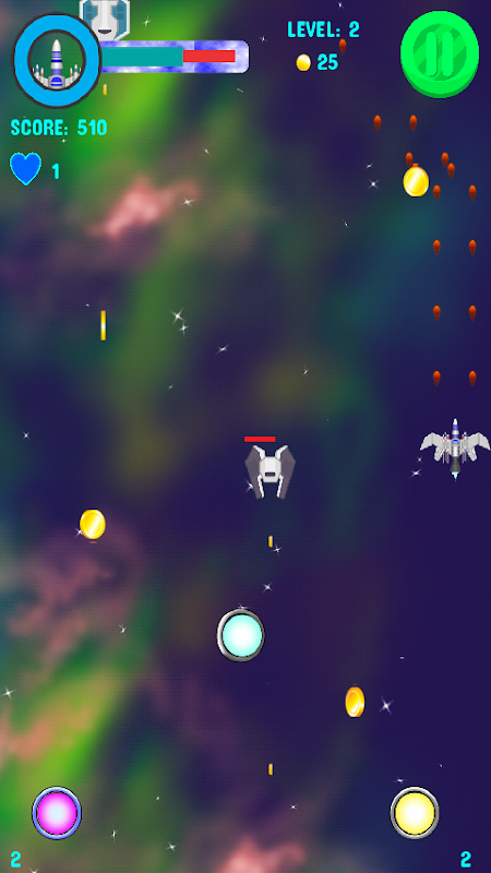 - Coins buy power ups and unlock more powerful space ships