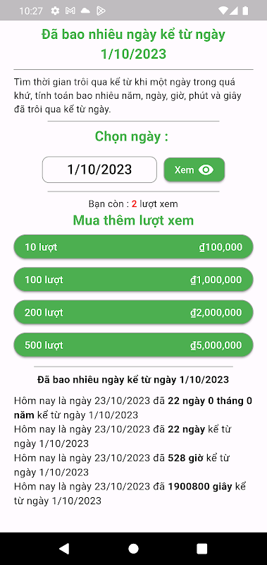 Uygulama, başlangıç tarihi ve saatinden bu yana geçen süreyi gösterecektir.