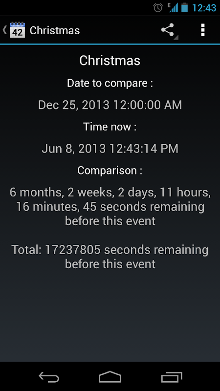 Countdown lets you know the time remaining before an event or the time elapsed after a date.