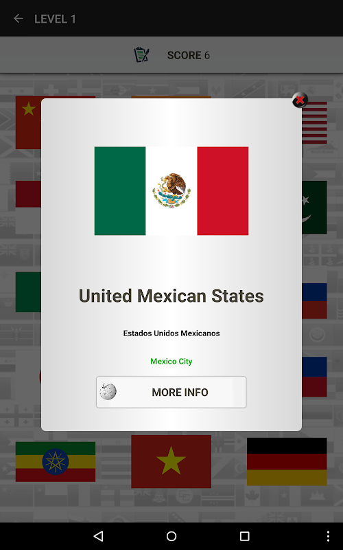 Dünyada ülkelerin bayrakları hakkında bilgisi olan hafıza yenileyin. Bu eğitsel oyun size Hollanda İtalya bayrağı ve bayrak İrlanda, bayrak Rusya ve bayrağı arasındaki farkı hatırlatacaktır. Sen Trinidad ve Tobago, Gabon ve Letonya gibi ülkelerin bayrağını öğreneceksiniz. Ayrıca Çekoslovakya şimdi Çek ve Slovak Cumhuriyeti olduğunu öğreneceksiniz. Bu çok samimi bir oyun dünyada ülkeler hakkında okunabilir pek çok bilgi var.