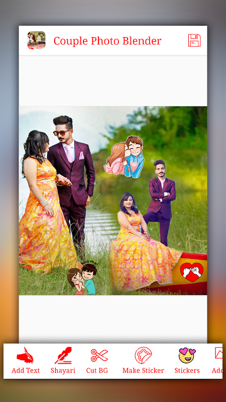 Couple Photo Blender - Photo Editor is used to blend couple photo with some beautiful background and you can add sticker on