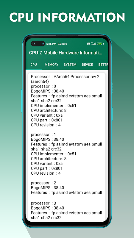 It is a CPU-Z Mobile System & Hardware info identification tool for android phone is one platform to know your any complete Android version information about your phone of CPU in one click, and user can see Sensor, Battery, Device, System and many more. it is a CPU z free application that reports information about your device.