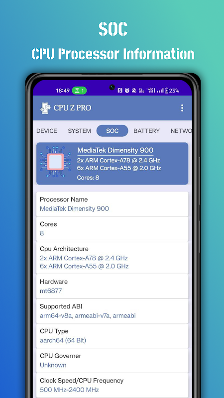 CPU-Z Pro, şık bir arayüzü çok sayıda özellik ile birleştirerek cihazınızın CPU ve sistem bilgilerine derinlemesine bir bakış sunan gelişmiş bir Android uygulamasıdır. 🚀 Hem sıradan kullanıcılar hem de donanım meraklıları için özel olarak tasarlanan CPU-Z Pro, cihazınızın performansı ve teknik özellikleri hakkında kapsamlı bir anlayış sağlar. İçerisinde ne olduğunu keşfedelim: