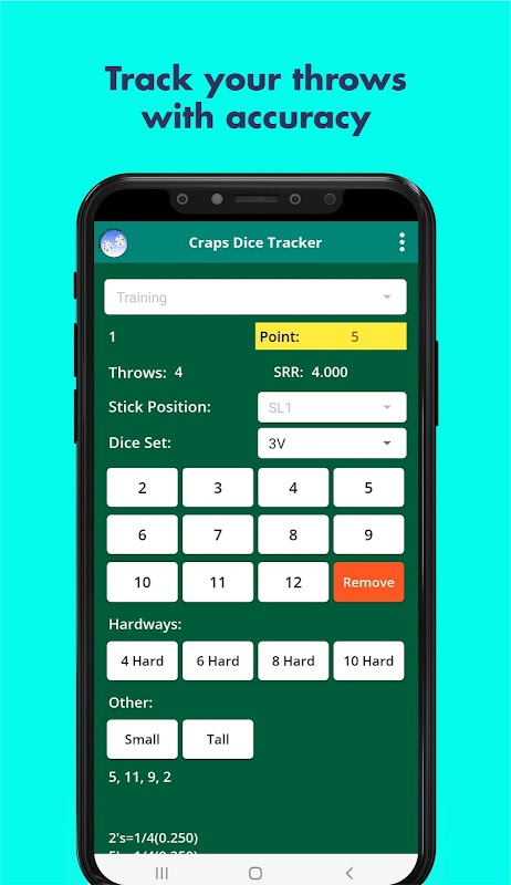 Craps Dice Tracker Uygulaması, tüm Casino ve Eğitim zar atışlarınızı izlemenize olanak tanır. Oyununuz için en iyi atışınızı bulun.