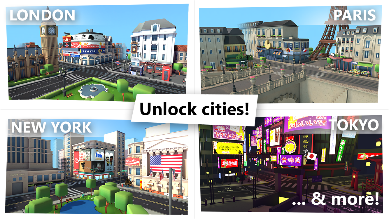 - Unlock famous cities