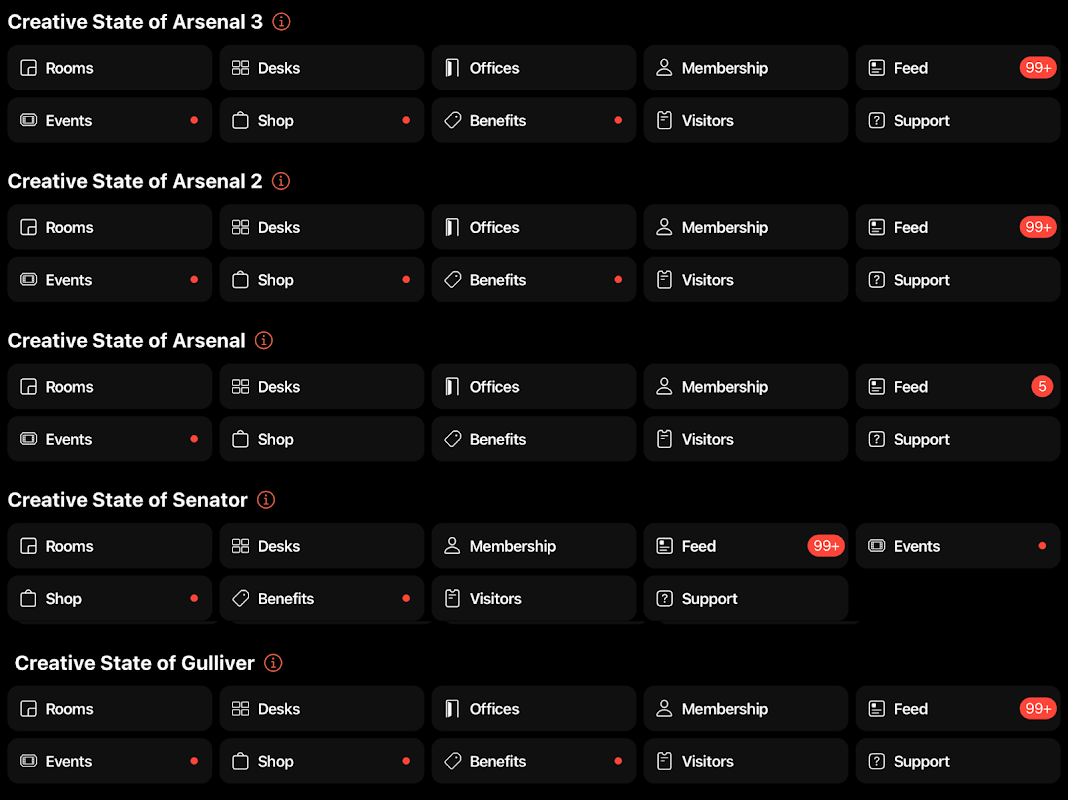 Creative States, modern ofislerden büyümenize ve yeni fırsatlar bulmanıza yardımcı olan aktif bir iş topluluğuna kadar her şey dahil hizmet sunan bir iş ortak çalışma alanları zinciridir. Burada sadece etkili bir şekilde çalışamaz, aynı zamanda insanlarla tanışabilir, projenizi geliştirebilir ve güçlü bir topluluğun parçası olabilirsiniz.