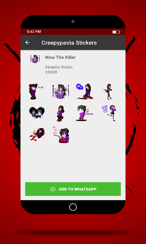 • Add your favorite Creepypasta Sticker For Whatsapp