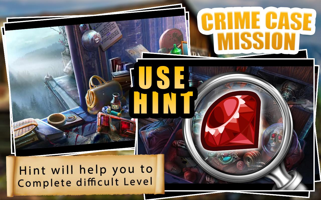 Crime Case Mission Hidden Object game is ADVENTURE GAME of crime case solving cases has many secret items in a each Stories. Enjoy greatest and HD realistic crime scene floor with different mystery and horror house places. Your goal is to find series of secret clue , evidence , analyze scene , suspects hidden objects on each level. Use Hint buttons to find items quickly.