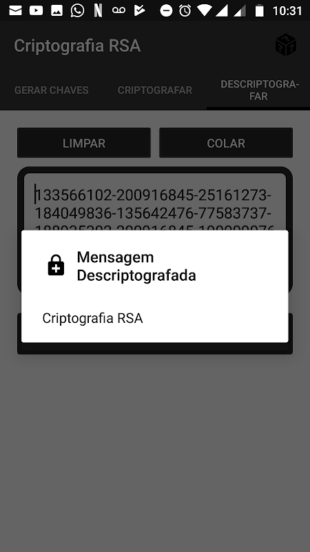 Uygulama şifrelemek ve RSA şifreleme yoluyla şifresini çözmek için kullanılır