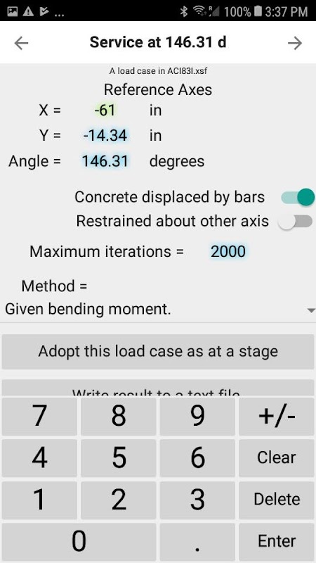 Bu uygulama enine kesitin herhangi bir şeklini, herhangi bir takviye düzenlemesini ve her malzemenin gerilme / gerinme ilişkileri için herhangi bir şekli kabul edecektir.