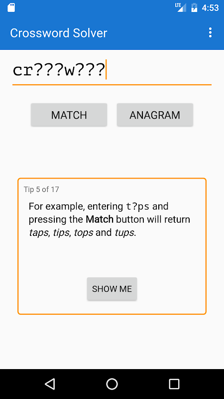 Instantly search a list of over 250,000 words using missing letters and anagrams