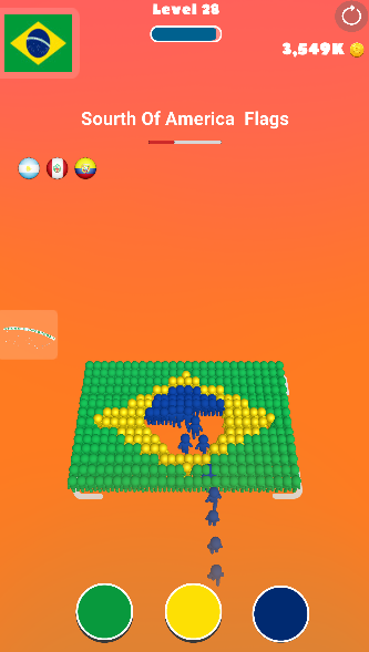 In Crowd Shape, you send a colorful character whose goal is to create and build a flag in a specific space, the more your characters are well organized the closer you get the largest percentage, just achieve 80% resemblance to the original flag and take you to the next level.