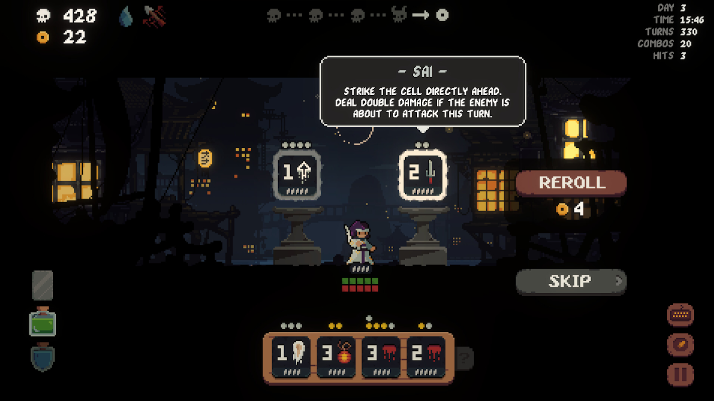 Zincirleme saldırılar yaparken, becerilerinizi yönetirken ve yıkıcı kombolar yaparken hareketlerinizi dikkatlice planlayın. Prosedürel olarak oluşturulan koşularla yeni zorluklara uyum sağlayın, karakterinizin yeteneklerini yükseltin ve zafer arayışınızda size yardımcı olacak güçlü eserler keşfedin. Derin taktiksel oynanış ve ödüllendirici ilerlemeyle Shogun Showdown, strateji ve roguelike hayranları için yoğun ve ilgi çekici bir deneyim sunuyor!
