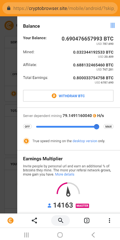 We have combined leading web technologies with a unique built-in mining algorithm. And now you can enjoy a fast and safe browser on a daily basis on all your devices. Browse the web, chat with friends, play games, watch videos, and increase your income at the same time. Get your money anytime without limits in just a couple of taps.