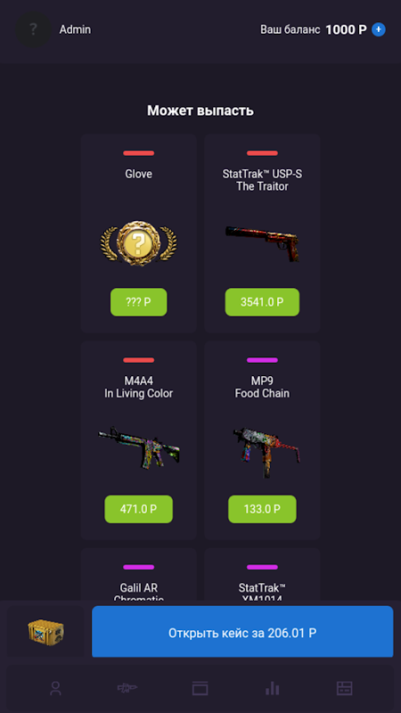 - Исправлена ошибка с открытием бесплатного кейса - Исправлена ошибка с открытием кейса в горизонтальном положении экрана - Обновлены шансы на выпадения скинов с кейсов - Добавлены контракты обмена - Прочие доработки и исправление багов - Получи 1000 рублей за первую авторизацию