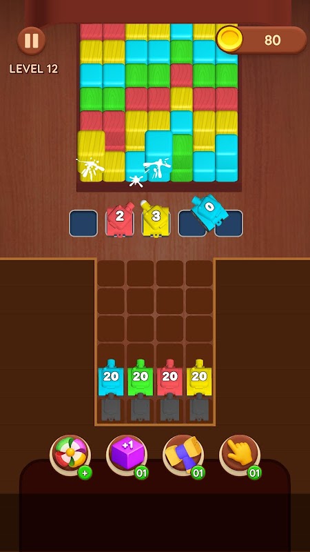 Aynı renkli blokları birleştirerek ve sıralayarak renkli blok küplerini patlatın
