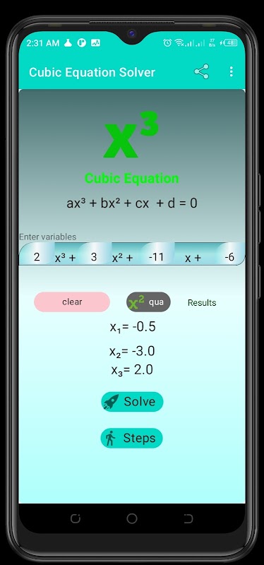 Bu uygulama, öğrencilerin Kübik denklemleri çözmeyi içeren matematiksel problemleri çözmelerine yardımcı olmak için tasarlanmıştır.