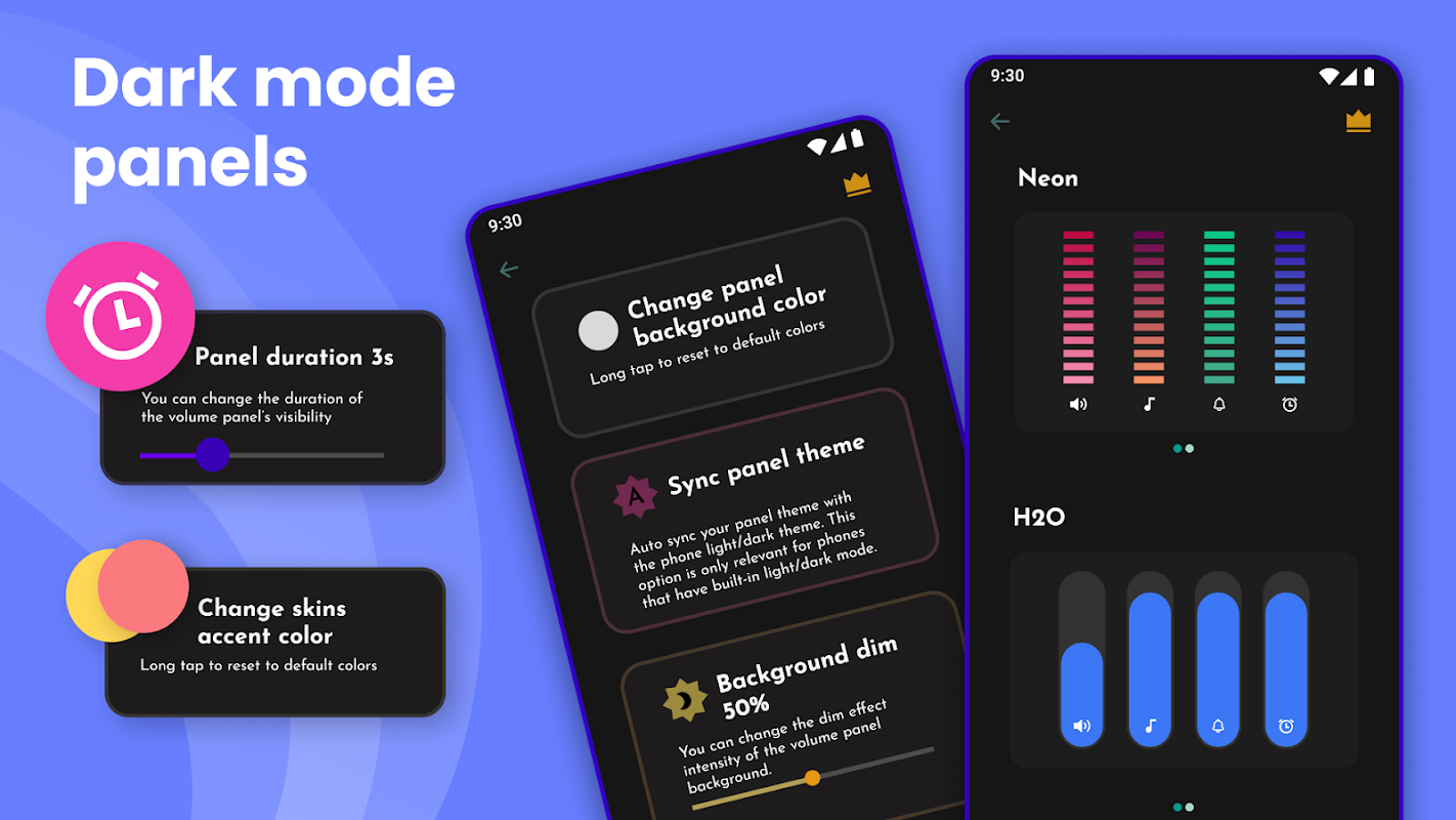 Ses kontrol stillerinizi değiştirmenin ve cihazınızı bir anda özelleştirmenin en basit yolu! Özel Ses Panelleri, cihazınızın ses kaydırıcısını yeni bir stil denetleyiciyle değiştirmek için tasarlanmış özelleştirme aracıdır. Alarmlar ve bildirimler dahil olmak üzere farklı ses akışları için birçok kaydırıcıya sahiptir.