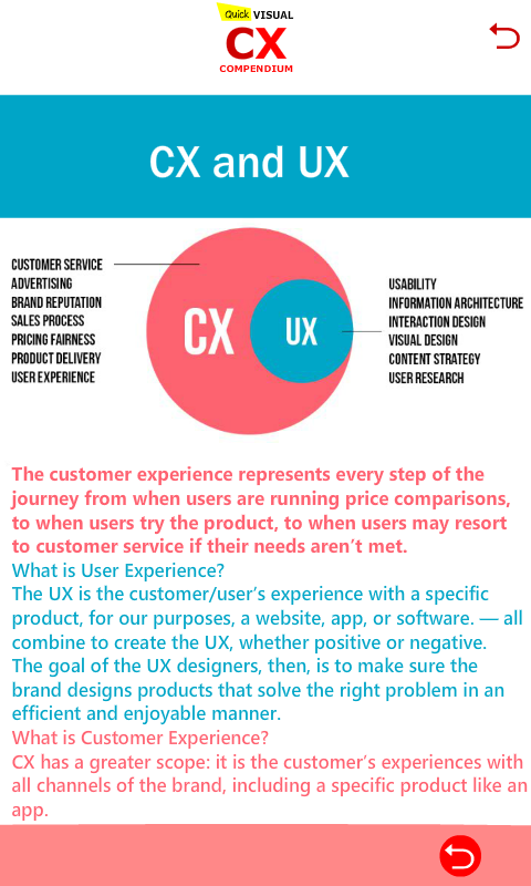 It has quick visual bricks of Customer Experience knowledge. It helps you to have a general understanding of different Customer Experience points you should know.