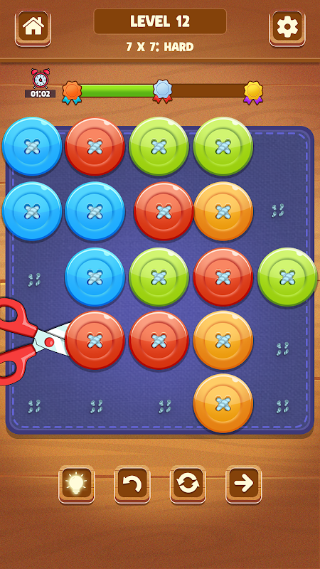 Cut a Button: Puzzle, hassasiyetinizi ve problem çözme becerilerinizi zorlayan büyüleyici bir mobil oyundur. Bu oyunda, puan kaybetmemek için her kesimin doğru olduğundan emin olarak kumaş parçalarından düğmeleri dikkatlice kesmelisiniz. Oynanış basit ama bağımlılık yapıcıdır ve her seviyeyi geçmenin en iyi yolu hakkında stratejik düşünmenizi gerektirir. Giderek zorlaşan seviyeler, canlı grafikler ve akıcı kontrollerle Cut a Button: Puzzle, saatlerce süren eğlence sunar. İster zaman geçirmek ister bulmaca çözme becerilerinizi geliştirmek isteyin, bu oyun rahatlama ve zorluğun mükemmel bir karışımını sunar.