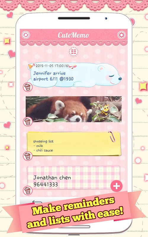 Keeping track of your notes and memos have never been this cute and convenient! This simple app lets you organize your notes and place them anywhere on your home screen, where you can easily view and access them. Use this app to create to-do lists, shopping lists, and reminders, or jot down notes with ease!