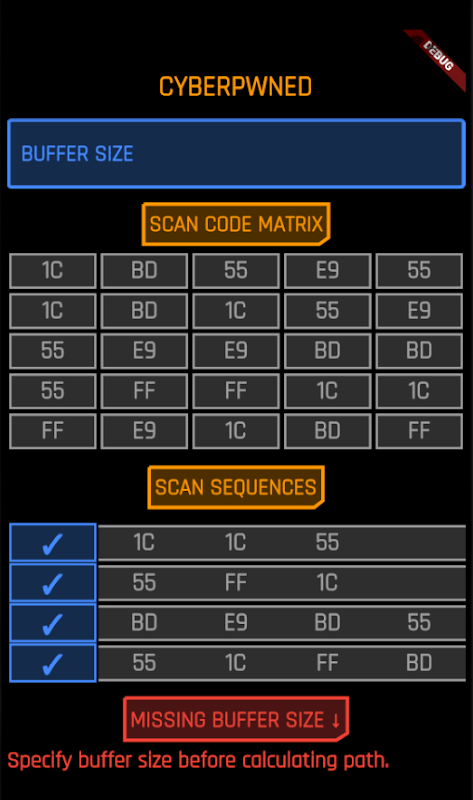 Bu uygulama, CP2077'nin İhlal Protokolü mini oyunu için en iyi çözümü otomatik olarak bulur. Matrisin ve dizilerin bir resmini çekin, arabellek boyutunuzu girin ve alabileceğiniz en faydalı yolu hesaplamalıdır. Steam Kılavuzunda daha ayrıntılı talimatlar bulunabilir: https://steamcommunity.com/sharedfiles/filedetails/?id=2345267849.