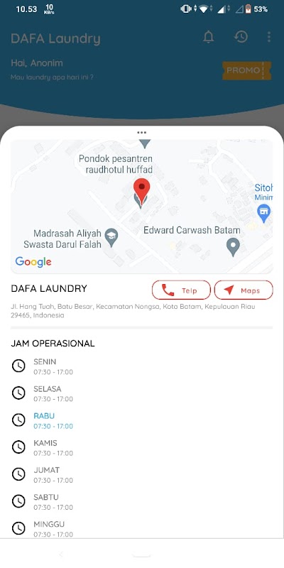 Artık Darul Falah İslami Yatılı Okulu - Batam'da DAFA Çamaşırhane ile özel olarak entegre edilmiş bir uygulama var.