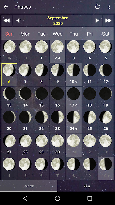 Bu uygulama mevcut Ay evresini, herhangi bir aya ait Ay evrelerini ve Ay, Güneş ve diğer tüm büyük gezegenler hakkındaki diğer gerçek zamanlı bilgileri görüntüler.