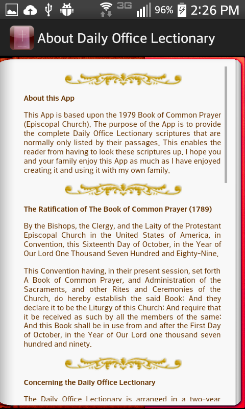 Bu Uygulama amacı, normal olarak sadece kendi yolu ile listelenen tüm günlük Ofisi Lectionary Kutsal sağlamaktır. Bu, bu kutsal bakmak zorunda okuyucuyu sağlar. Ben kendi ailesi ile kullanım için onu oluştururken eğlendiğimiz gibi siz ve aileniz kadar bu App beğeneceğinizi umuyoruz.