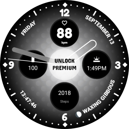 Saat yüzünün tüm özelleştirmelerini ve seçeneklerini keşfetmek için bu saat yüzünün tam sürümünü Google Play mağazasında bulabilirsiniz.