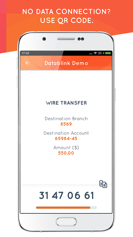 Datablink Mobil 200 gelişmiş kimlik doğrulama ve yetkisiz erişim ve hileli işlemlerin önlenmesi sağlayan kullanıcıları ve bankalar için imza finansal işlem sunan yenilikçi bir mobil uygulama. Aksine, fiziksel olarak bir kerelik şifre oluşturmak için bir cihazın içine bir kod yazmanız bir kullanıcı gerektiren yerine, kullanıcılar sadece kendi kimliklerini onaylamak için kendi smartphone kullanmak. Diğer cihazlar gereklidir. Bir kullanıcının kimliğini doğrulamak veya belirli bir işlemi imzalamak için, örgüt kullanıcının akıllı kamera tarafından okunan bir QR Code Push teknolojisini kullanan ya da kullanmayı tercih edebilirsiniz.