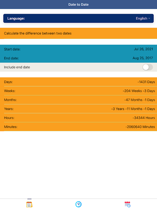 "Tarih Hesaplayıcı Plus: Saat, Tarihler ve Takvim", kullanıcının iki veya iki tarih arasındaki süreyi hesaplamasına yardımcı olmak için tasarlanmış basit bir tarih ve saat uygulamasıdır. "Tarih Hesaplayıcı Plus: Saat, Tarihler ve Takvim" hem tarih hem de saatle ilgili işlemlerle ilgilenen herkes için harika bir araçtır. "Date Calculator Plus: Time, Dates ve Calendar" da tarih ve saati hesaplamak, diğer uygulamalara kıyasla daha kolay, daha hızlı ve daha iyidir.