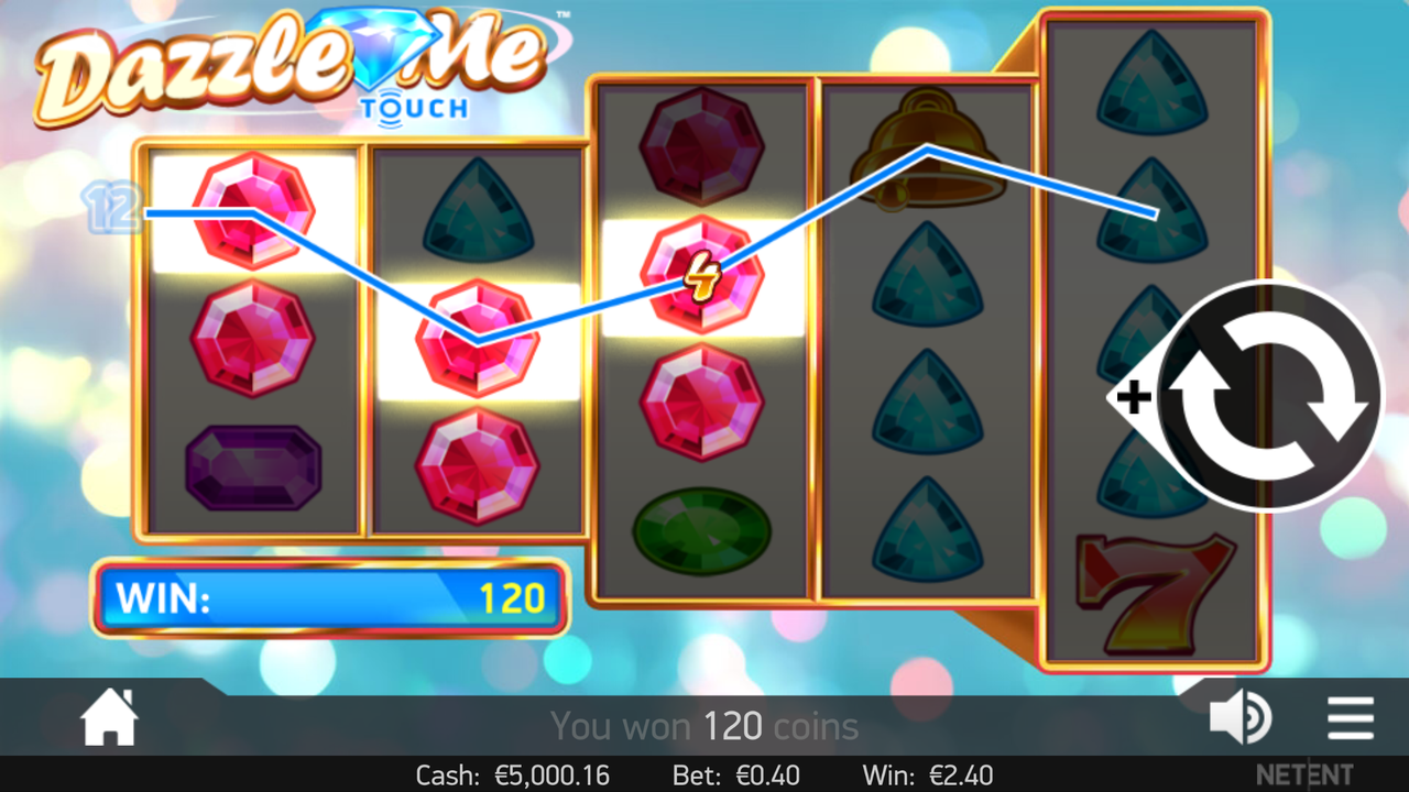 Elmaslar, zümrütler, ametistler ve yakutlar. Bu Dazzle Me slot makinesidir.