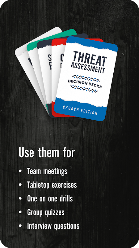 Emniyet ve emniyet senaryoları için cep boyutunda simülatörünüz Decision Deck'lerle tanışın. Eleştirel düşüncenize, muhakeme yeteneğinize ve karar verme sürecinize meydan okumak için tasarlanan bu desteler, sizi çatışma ve krizden şüpheli olaylara ve yaşamı tehdit eden acil durumlara kadar gerçek hayattaki durumların tam ortasına itiyor. Çok önemli soruları soruyorlar. Ne yapardınız? ve Nasıl tepki verirsiniz?