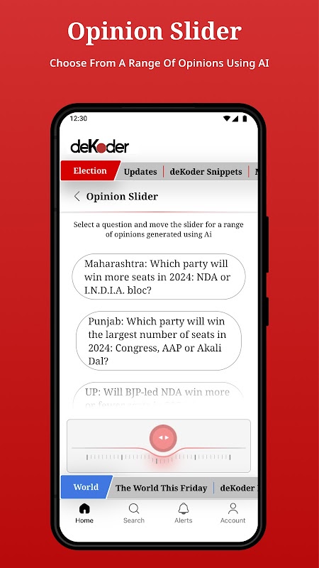 Hindistan'dan ve dünyanın dört bir yanından en son seçim haberlerini, analizleri, karşılaştırmaları, kamuoyu yoklamalarını ve öngörülü tahmin araçlarını yalnızca deKoder'dan alın. Yapay zeka odaklı bir platform ve araştırma laboratuvarı olan resmi deKoder mobil uygulaması, Hindistan ve küresel seçimlerle ilgili en kapsamlı veritabanlarından birine sahiptir.